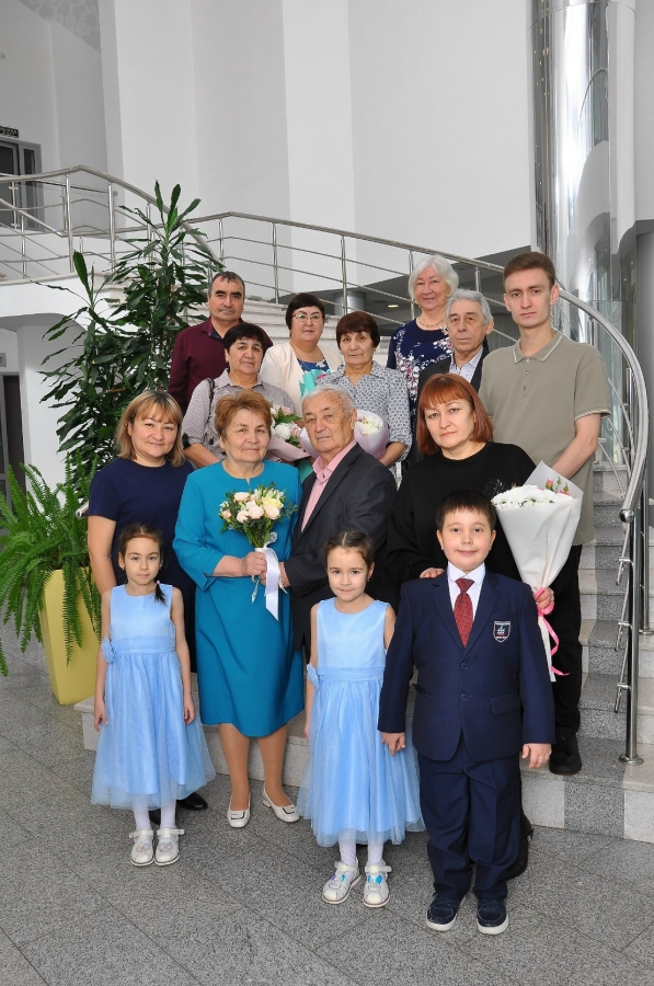 в преддверии Международного Дня матери во Дворце торжеств города Набережные Челны состоялся парад юбиляров. Нашими гостями были супруги Косаревы Николай Васильевич и Анна Дмитриевна (отмечающие 70-летие семейной жизни!), Давлетшины Гафин Зиганшович и Халида Муллахметовна (55 лет совместной жизни), Яблочковы Николай Александрович и Евдокия Васильевна (50-летний юбилей совместной жизни), Шариповы Разяп Галимуллович и Роза Акрамовна (50 лет семейной жизни).